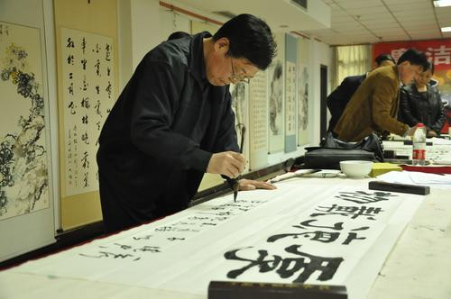 活动现场,中国书法家协会会员、陕西省书协创作委员张锦华,中国榜书艺术研究会会员、陕西省书法家协会会员秦致中,陕西省美术家协会会员、中国艺术研究院文研中心特聘画家,集团公司美术家协会主席王祥生等书画名家与矿区书协的书画爱好者通过艺术创作,将一幅幅笔精墨妙的书法作品形象生动地展示在人们面前。作品既有劝诫的格言警句,也有寓意深刻的山水景物,体现了党风廉政建设与艺术文化活动的有机结合。