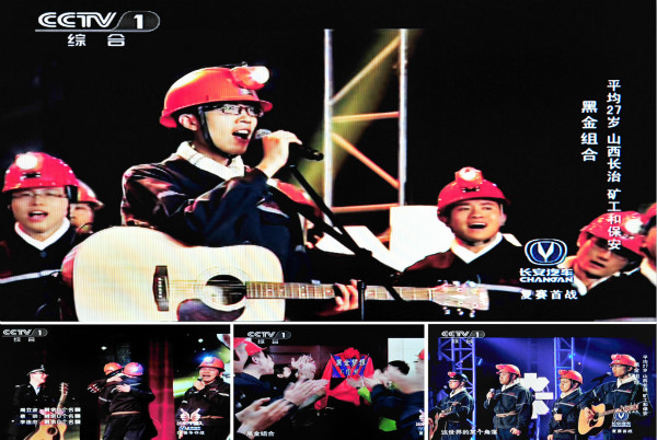 第一次亮相央视是在今年2月23日晚的北京,他们参赛的曲目是许巍的《蓝莲花》和原创歌曲《做自己》,他们的朴实与对音乐的热爱,打动了现场观众和评委,李连杰、蔡明、周立波全票通过并竖起大拇指称他们很出彩!同时也让全国观众记住了潞安矿工黑金组合。黑金组合是由矿工常鹏宇组建的,当初为了参加矿上的文艺活动,他找来了会弹吉他的侯科和会创作的杨科林。这俩人都是大学生,秦星星是个90后,最后一个加盟。4个男生经常在井下唱歌,井下的回音挺好的。主唱杨科林,就是在漆黑的井下完成了那首《做自己》。井下环境挺安静,我经常能在井下得到不错的词曲灵感。