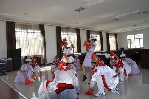 员工在文化休闲广场文体娱乐活动室排练蒙古族舞蹈