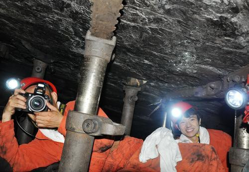 此次拍摄的对象是川煤集团达竹公司小河嘴煤矿采煤一队生产1班。3名记者将镜头对准井下一线煤矿工人,从班前会开始,到打旗入井,采煤工作面设备检修,再到现场生产,进行了全方位、全过程拍摄。图为达州日报记者闫军在小河嘴煤矿井下2018极薄煤层采煤工作面现场拍摄。