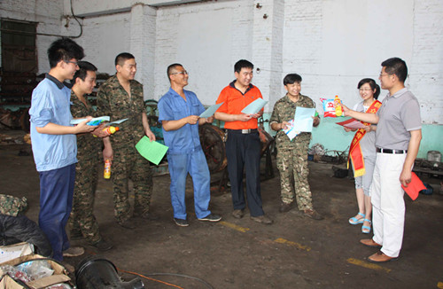 为扎实开展好6月安全生产月活动,提高全员安全意识和素质,营造强化红线意识,促进安全生产的良好氛围,山东能源新矿集团勘探公司工会充分发挥工会组织在安全生产中的群众监督和宣传教育作用,组织群监员走进车间查找安全隐患,并开展职工安全知识竞赛活动,受到广大职工的欢迎。图为该公司机修厂职工正在抢答问题。