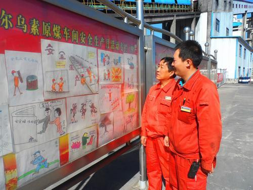 为更好的落实强化红线意识、促进安全发展的安全月活动理念,近日准能集团哈尔乌素选煤厂原煤车间举办了职工安全漫画展。该车间职工通过结合工作实际把生产线上的安全注意事项、危险源等通过漫画再现出来,经过大家的相互评比与讨论,进一步提升员工的安全意识。图为该车间员工在观看漫画。
