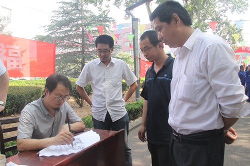 孙村煤矿书画爱好者为职工画扇面 来源:新矿集团报社 作者:李毅 邱石 时间:2014-06-13 【字体:小 大】 近日,山东能源新矿集团孙村煤矿工会组织书画爱好者在文化长廊齐聚一堂,用自己手中的画笔在扇面上挥毫泼墨,为职工画安全扇面,进一步浓厚了安全生产氛围。 分享到: 【打印正文】