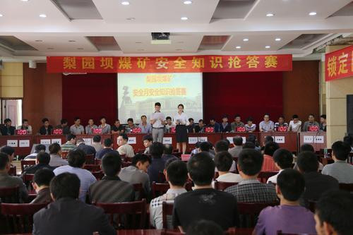 在全国安全月里,为进一步强化员工们的安全意识,重庆能源梨园坝煤矿工会牵头,矿安监科、团委联合举办了强化红线意识、促进安全发展2014年安全月安全知识抢答赛。来自该矿机关党支部和基层队的9支代表队27名选手参加了抢答赛,数百名员工到场观看了比赛。赛场还设置了仲裁委员会,由矿领导组成。