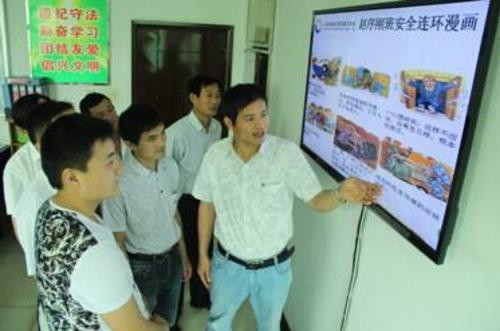 淄矿集团唐口煤业公司普掘二队“连环漫画”说安全 来源:淄矿集团唐口煤业公司 作者:张继涛 陈琪 时间:2014-06-23 【字体:小 大】 火红的6月,山东能源淄矿集团唐口煤业公司普掘二队创新安全教育方式,利用区队班前班后会安全教育学习时间,组织三班班长将掘进施工中的敲帮问顶、矿车运输、支架支护等习惯性违章现象的安全连环漫画课件,逐一向班组职工讲解,强化安全为天的思想,及时让班组职工远离三违,告别三违,确保安全作业。 图为6月20日,该队班长赵序刚讲解在工作中经常出现的违章案例。 智能标签: 淄矿集团 唐口煤业公司 相关内容 分享到: 【打印正文】