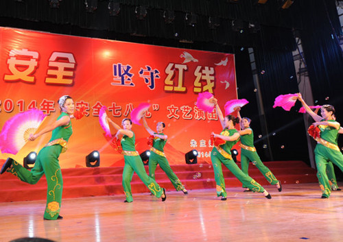 8月26日下午,安徽淮北矿业集团朱庄煤矿职工礼堂歌声悠扬,舞姿翩翩,情系安全,坚守红线2014年安全七八九安全主题文艺演出正在精彩上演。歌舞、情景剧、快板、小品等节目精彩纷呈,表达了矿区职工家庭呼唤安全,关注安全,关爱生命的美好愿望,洋溢着浓浓的安全亲情氛围。