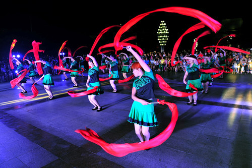 广场健身舞、广场民族舞、广场拉丁舞、广场交谊舞、广场流行舞、广场街舞、广场排舞、广场抒情舞,展示舞蹈丰富多彩。
