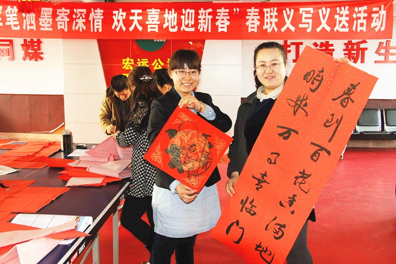 为弘扬国学楹联传统文化,营造浓郁的节日氛围,满足广大职工的文化需求,同煤集团宏远公司工会在2月2日至6日举行为期五天的春联义写义送活动。