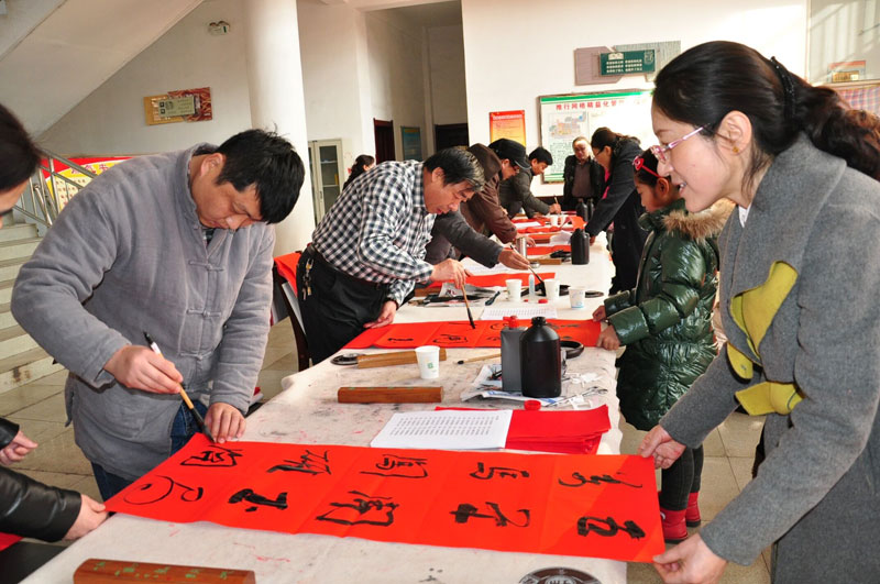 潞安集团开展书法志愿者进社区春联福字送居民活动 来源:潞安集团 作者:张丽玲 郭泉 时间:2015-02-13 【字体:小 大】 送福到社区,真情暖人心。2月10日,由潞安集团文联、书法家协会、机关党委、工会、社区共同举办的“万福进万家,共享中国年”活动拉开帷幕。潞安集团文联主席、书协主席阎接囤等一行,现场挥毫泼墨,创作了300余幅散发着清新墨香,寓意喜庆吉祥的对联和100个形式各异的”福“字,并亲手送到广大职工家属和环卫工人手中,在传递节日祝愿的同时,也让更多的社区居民体会到传统书法的艺术魅力。 智能标签: 潞安集团 书法志愿者 春联 相关内容 分享到: 【打印正文】