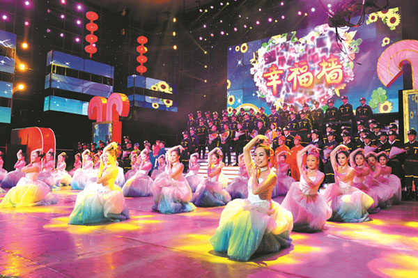 场面震撼,歌声欢快。伴着大型舞蹈《光荣属于你》的优美旋律,文艺晚会圆满落下帷幕。