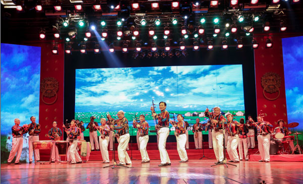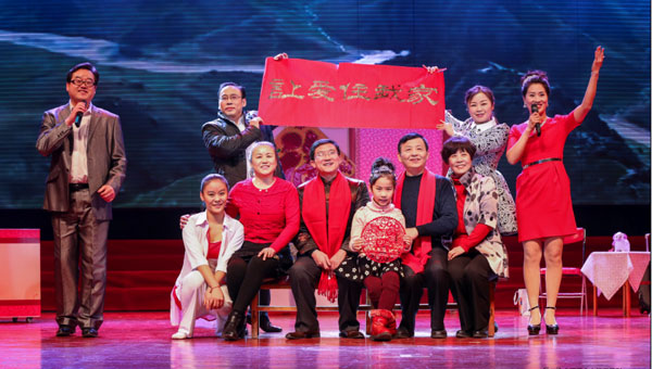 演出结束后,朱立新等集团公司领导走上舞台与演职人员一一握手,祝贺演出成功,并合影留念。