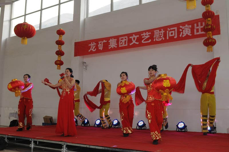 龙矿集团公司党政工领导为了把公司本部的心声传送给山西龙矿的每一位干部员工,把2015年的形势发展、双代会精神以及公司的规划目标宣贯给每一位干部员工,特地组织了这支精干的演出小分队,将心声融合在歌声中,融合在舞步里,融合在小品里,融合在快板书里带给驻外开发的干部员工们。为了使节目更精彩,小分队全体演职人员不辞辛劳,每到一矿都紧锣密鼓地装台、调试设备、筹备道具、周密组织、全情投入。利用装台这段时间,还专门组织在井口为上、下井的小班员工送上祝福,宣传了新《安全生产法》,叮嘱他们牢记安全,关爱生命健康。