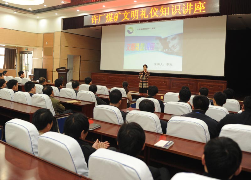 此次讲座是许厂煤矿文明月期间一项配套活动。为了进一步规范干部职工日常文明行为,提高干部职工的综合素质,该矿从日照聘请了山东外国语学院航空旅游学院副院长、全国工商联高级礼仪文化讲师李泓前来授课。她的授课语言生动、通俗易懂,并且结合煤矿的特点重点就语言表述、行为礼仪、接待礼仪、会议礼仪等进行了形象认真的讲解,赢得了职工的阵阵掌声。