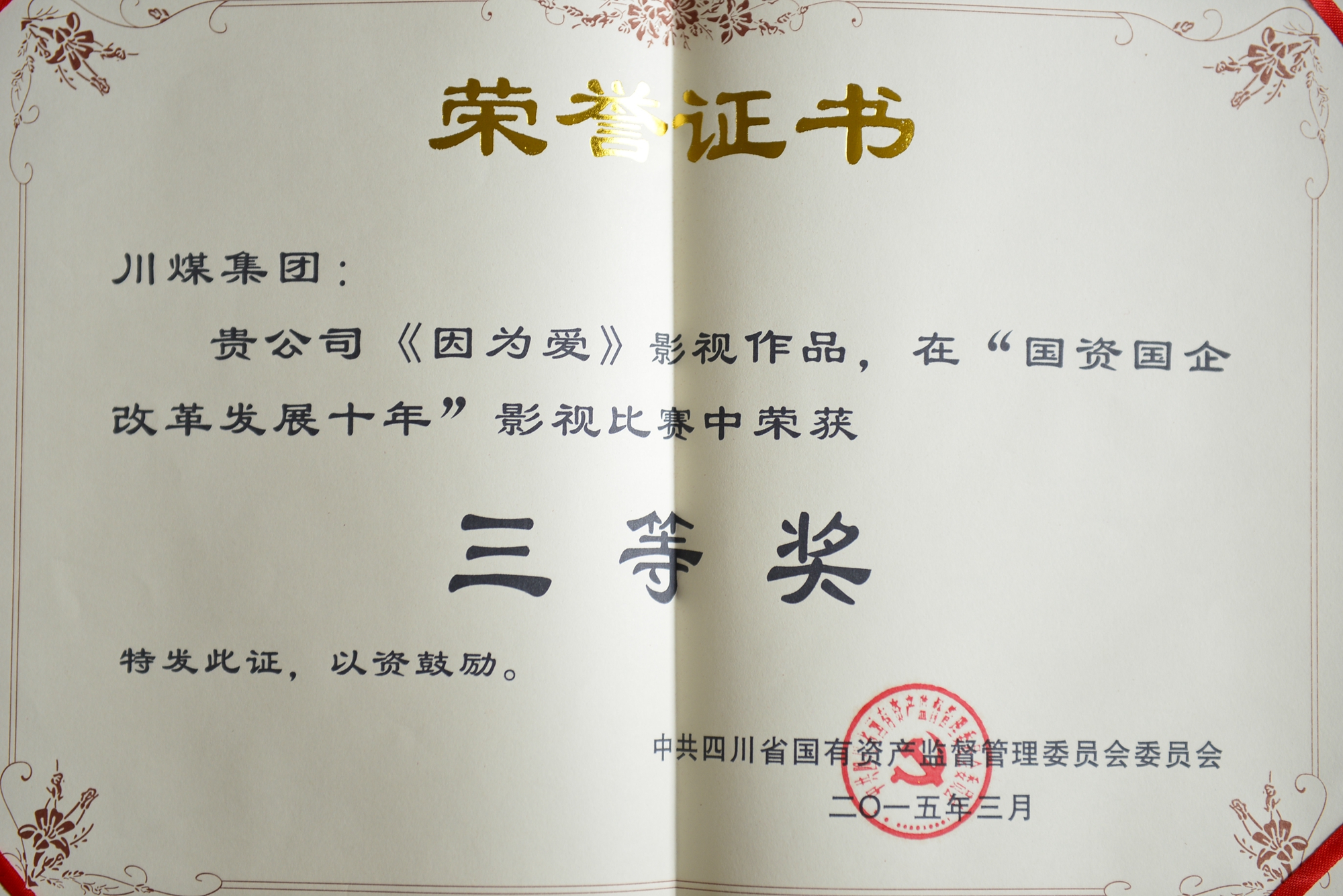 近日,四川省国有资产监督管理委员会举办的“国资国企改革发展十年”影像大赛揭晓,攀枝花煤业集团花山矿拍摄的微电影《因为爱》受到评委的好评,在众多的参赛作品中脱颖而出,荣获视频作品三等奖。