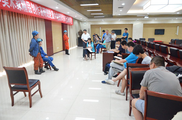 在为期3天的采风写生活动中,有关领导和高研班的师生们一起在矿区参观考察了调度中心、主副井、洗煤厂、机修厂和矿区生态园等,学习掘进、割煤、支护等井下大型生产、运输机械和洗煤设备有关知识。学员们冒着30多度的高温,在维修车间、洗煤厂等矿区各地进行实地写生创作,与煤矿工人亲切交谈,了解井下和地面各工种的生产工作情况,青年美术家们对矿山发展的关心和热情也被矿工们交口称赞。