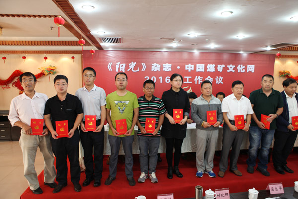 会上,刘万义宣读了2016年度《阳光》杂志编务工作和全国煤矿文化网络宣传先进单位和先进个人名单,与会领导向各先进单位和个人代表颁发了获奖证书。河南神火集团政工部部长王启、山东能源枣矿集团蒋庄煤矿工会办公室主任刘仍索分别代表获奖单位和个人表态发言。