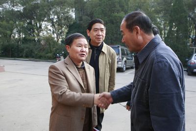 中国煤矿作家协会主席刘庆邦与潞安集团党委书记王安民亲切握手,互致问候
