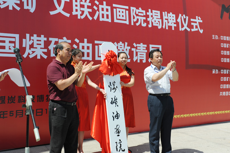 初夏时节,阳光明媚。5月28日上午10时,在江苏徐州风景秀丽的云龙湖畔,中国煤矿文联和中国矿业大学联合创办的煤矿油画院揭牌仪式暨中国煤矿油画邀请展在中国矿业大学(南湖校区)隆重举行。中国煤矿文联副主席兼秘书长、中国煤矿文化宣传基金会副理事长兼秘书长张强,中国矿业大学党委书记、中国煤矿文联特聘副主席邹放鸣,中国煤矿美术家协会主席吴凤仪,徐矿集团党委副书记苏意隆,淮北矿业集团副总经理陈亚东,徐州广电集团副总编王经波,中国矿业大学工会、建筑与设计学院、博物馆等有关部室负责人和煤矿美术界人士、有关媒体记者等共100余人参加揭牌仪式。揭牌仪式由中国矿业大学工会主席李来成主持。