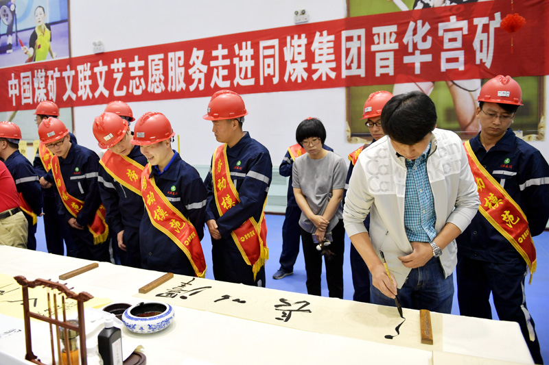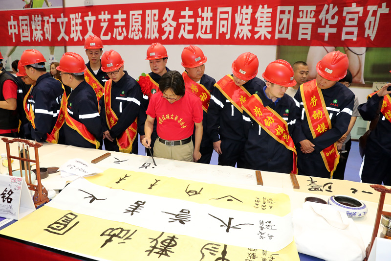 “今天我们安排了基层的5名书法家来到现场加入文艺志愿服务队伍,既是想为工人师傅们多创作一些作品,同时也是希望与煤矿文联请来的各位艺术家有更多更紧密地交流,这对锻炼文艺骨干和提升矿区文艺创作水平都是很好的机会。”杨占先介绍到。
