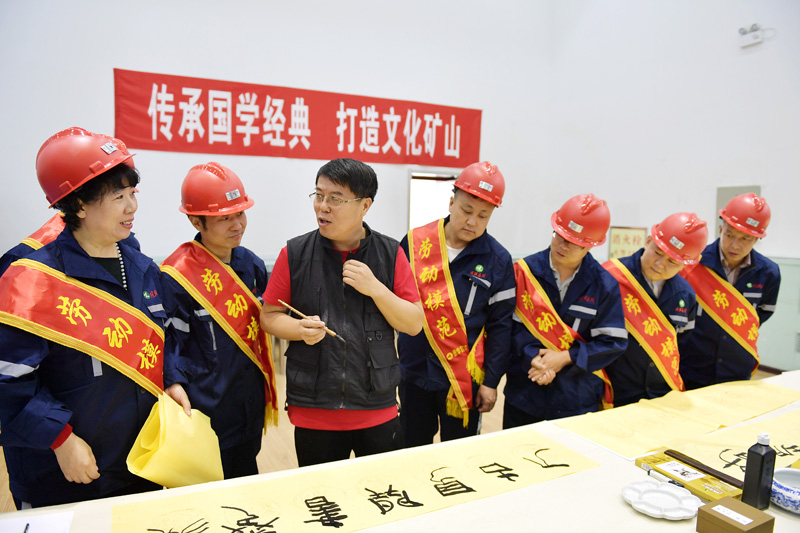 23日上午,志愿者们来到位列塔山循环经济工业园区龙头的现代化企业——塔山煤矿,矿区道路整洁、植被浓茂,在副井旁边的文化长廊通道,已经有几十名矿区劳模和职工代表在那里等候志愿者的到来。“一直想在家里挂上几幅书法作品,这不,听说今天中国煤矿文联组织到矿上文艺志愿服务,我就过来了,已经准备好了几句词,一会儿请书法家们给写写。”一位正准备下井的工人说。