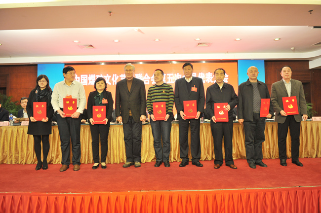 梁嘉琨为新任中国煤矿文联副主席、特聘副主席颁发证书