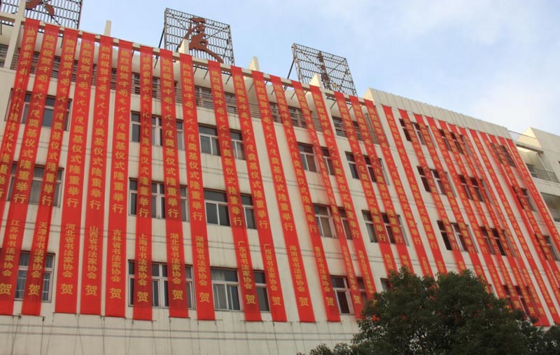 据介绍,建成后的中国书法大厦位于合肥市高新区科学大道与望江路交口,地面层高23层。据了解,目前这是中国书法艺术界第一座以中国打头命名的大厦,中国书法大厦将建成集创、教、展、销一体化的综合服务型大楼。大厦的首要职能是以书法为主题,提供良好的书法创作、书法教学、书画展览及书画销售场所与环境;其次是以文化为底蕴,提供围绕书法艺术的相关配套服务。大厦建成后对于推动中国书法艺术和书法产业都将起到巨大作用。