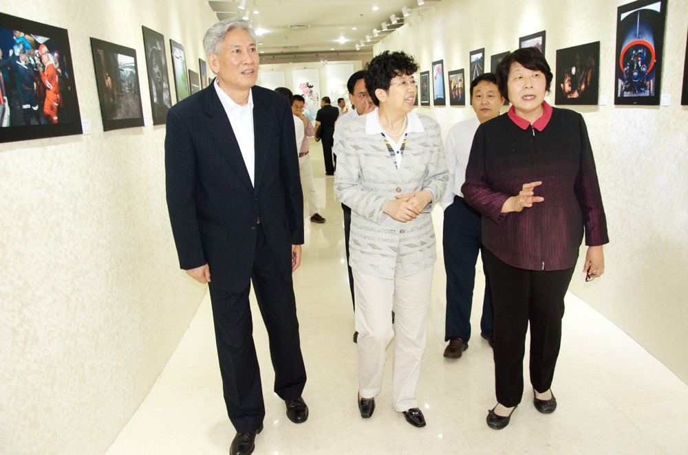 中国文联党组书记、副主席赵实,中国煤炭工业协会副会长、中国文联全委、中国煤矿文联主席梁嘉琨,中国煤矿文化宣传基金会理事长、中国煤矿文联副主席庞崇娅等领导一同观看展出作品