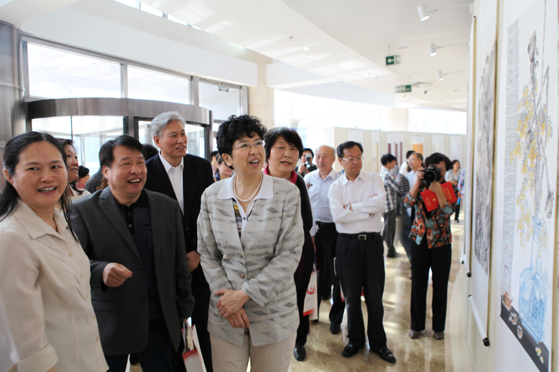 中国文联党组书记、副主席赵实,中国美术家协会党组成员、副秘书长陶勤,在中国煤矿文联主席梁嘉琨、副主席庞崇娅,中国煤矿文联美协主席吴凤仪等人陪同下,观看煤矿美术精品展