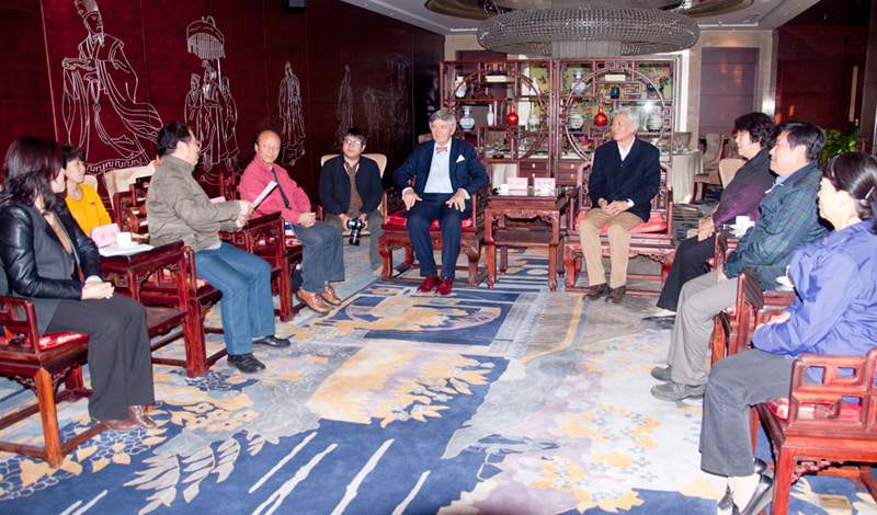 最后,梁嘉琨主席发表了重要讲话。他首先代表中国煤矿文联向代表欧洲科学院,到中国,到煤矿文联,来为艺术家殷阳颁发欧洲科学院院士证书的安特·格利博达先生,深表谢意。他说很高兴有机会参加殷阳先生获得欧洲科学、艺术和人文学院授予外籍院士的仪式,非常使人难忘,我们会永远记住这一天。特别是安特·格利博达介绍欧洲科学、艺术和人文学院吸收殷阳先生为外籍院士的经过,更使我感动不已。可以看出安特·格利博达先生不仅是一位建筑史学家,更是一位富有远见的艺术史学家,他长期以来对中国艺术家的关注,对中国煤矿艺术家的关注,我深表由衷的谢意。正因为安特·格利博达先生的远见卓识,殷阳先生才有获得院士的机会。他有今天的机遇,与他长期以来对煤矿艺术的热爱和坚持不懈的努力密不可分,他是第一个荣获欧洲科学、艺术和人文学院院士的煤矿艺术家,我感到由衷的欣慰和自豪。他不仅代表自己,更代表着千千万万长期生活在煤矿第一线的艺术家。这既是他自己的荣誉,也是中国煤矿文联的荣誉。让我们共同努力为中国煤矿艺术事业的发展作好我们的工作。最后,我祝愿安特·格利博达先生在北京生活的愉快。