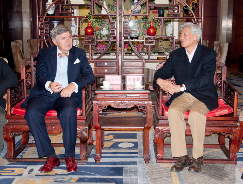 中国煤矿文联主席梁嘉琨和安特·格利博达院士亲切交谈