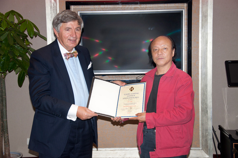 安特·格利博达代表欧洲科学、艺术和人文学院向殷阳先生颁发外籍院士证书
