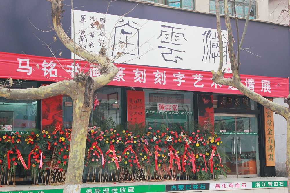 由中国煤矿书法家协会、临沂瀚云堂主办的马铭书画篆刻现代刻字艺术展12月20日在中国书法名城-----山东临沂市瀚云堂举行开幕式。中国书法家协会理事、中国书法家协会培训中心教授、山东大学书法研会究院副院长、山东省书法家协会主席顾亚龙;山东省书法家协会副主席,临沂市书法家协会主席,临沂市文联副主席龙岩、山东省书法家协会秘书长靳永先生参加了开幕式并讲话。