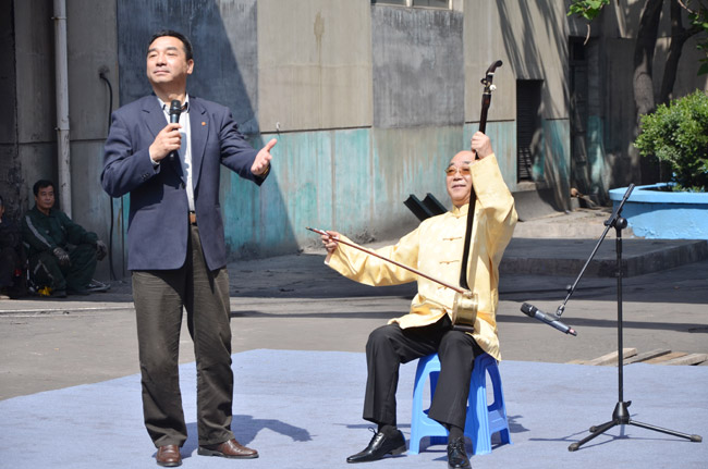 中国煤矿音乐家协会副主席张永智向器乐爱好者传授二胡和雷琴技法