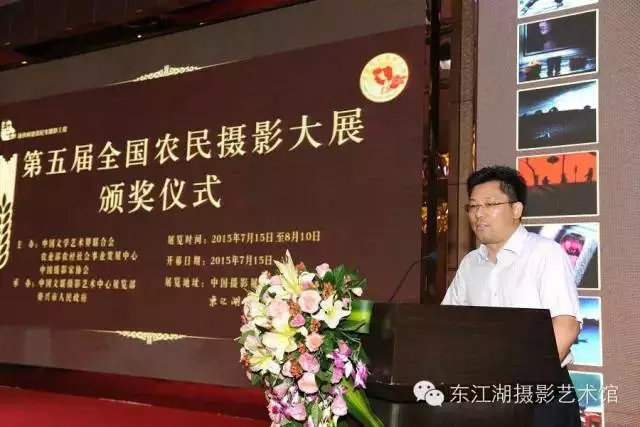 7月15日上午8点30分,由中国文学艺术界联合会、中国摄影家协会联合主办,农业部农村社会事业发展中心、中国文联摄影艺术中心展览部、湖南省资兴市人民政府共同承办的“第五届全国农民摄影大展”颁奖仪式在资兴市雄森豪庭酒店宴会厅A区和东江湖摄影艺术馆隆重举行;10点整,第五届全国农民摄影大展获奖作品展览开幕式在东江湖摄影艺术馆举行。