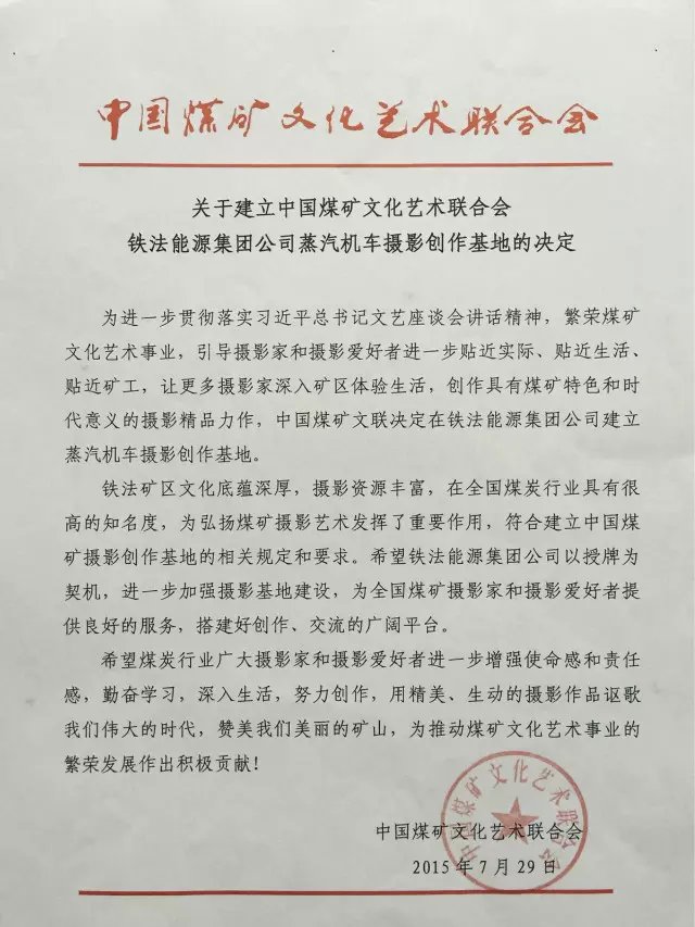中国煤矿文联蒸汽机车摄影创作基地在辽宁铁法能源集团挂牌 来源:中国煤矿摄影家协会 作者:高跃冬 时间:2015-08-01 【字体:小 大】 中国煤矿文联副主席兼秘书长张强、中国煤矿文联摄影家协会主席白海金为铁法能源集团蒸汽机车摄影基地授牌。 分享到: 【打印正文】