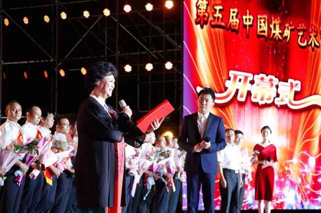 开幕式上,陈建文、梁嘉琨、张波和张建公共同为第五届中国煤矿艺术节揭幕。梁嘉琨代表艺术节组委会向开滦集团颁发第五届中国煤矿艺术节特别贡献奖。