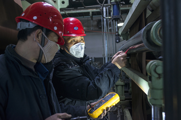 技能大师为恢复生产提供技术支持 来源: 作者:黄志伟 时间:2020-02-13 【字体:小 大】 2020年2月7日集团首席技能大师石红彬(右)利用停车期间检测二号线柔软化装置张力辊电阻,为消除静电恢复生产提供数据。(摄影:黄治伟 中国平煤神马集团帘子布公司) 分享到: 【打印正文】