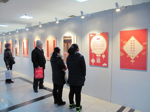 1月29日,“同筑中国梦 共度书香年”楹联文化展在湖北省图书馆开幕,47幅图片和作品为市民解读楹联艺术和典故。该展由国家图书馆主办,湖北省图书馆承办,全国各地各级公共图书馆同步展出,与市民读者共度书香年,展览延续至2月22日。