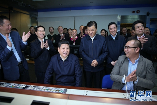 临近中午,习近平来到中央电视台。他听取中央电视台板块业务、媒体融合等情况介绍,到总控中心观看电视传播能力建设视频展示,在《新闻联播》演播室、导控室向主持人和工作人员了解新闻制作导播流程,并亲自切换按钮体验模拟播出。习近平指出,中央电视台每天面对数亿观众,一定要紧跟时代、放眼全球,多设计一些融思想性、艺术性于一体的好栏目,多创办一些脍炙人口、寓教于乐的好节目。