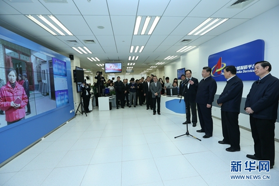 2月19日,中共中央总书记、国家主席、中央军委主席习近平在北京主持召开党的新闻舆论工作座谈会,并到中央新闻单位调研。这是习近平在人民日报社新媒体中心通过新媒体平台发送语音信息,向全国人民致以元宵节的问候和祝福。新华社记者 庞兴雷 摄