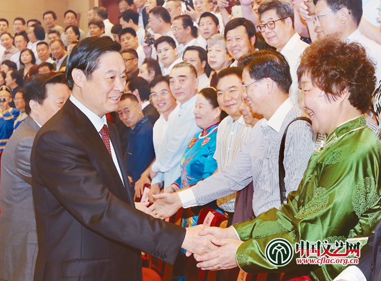 6月13日,中国民间文艺家协会第九次全国代表大会在北京开幕。中共中央政治局委员、中央书记处书记、中宣部部长刘奇葆亲切接见与会代表。 本报记者 孟祥宁 摄