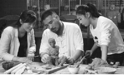 ■河北省工艺美术大师马若特(中)进行泥人创作。