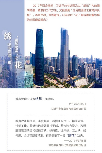今年两会,习近平两次谈到“绣花”。 绣的什么花?