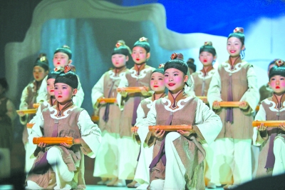 谷建芬“新学堂歌”音乐会上小朋友们在演唱歌曲《三字经》