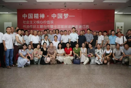 7月16日至7月19日,由中国文联和中国书协、江西省文联、江苏省文联、河北省文联、中国书协行业建设委员会共同主办的“中国精神·中国梦——社 会主义核心价值观书法作品主题创作暨全国基层巡展”活动第一站来到江西省文联展厅。江西省文联、中国书协相关负责人出席开幕式。