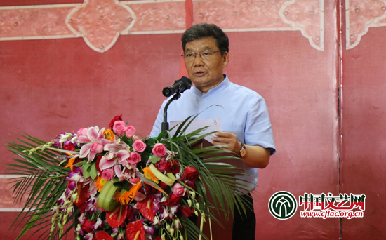8月21日,“喜迎党的十九大——第十届西藏珠穆朗玛摄影展”开幕式在民族文化宫举行。图为中国文联党组成员、副主席李前光在开幕式上讲话。