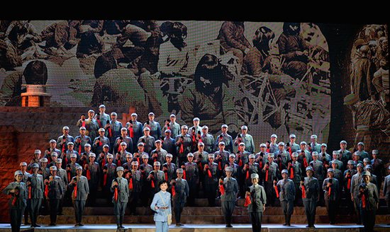 “最后一尺布,用来红军装。最后一碗米,用来做军粮,最后的老棉袄,盖在担架上,最后的亲骨肉,送他去战场词。”