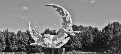一池碧水之上,一片苍翠林间,身姿曼妙的仙女斜靠弯月,思绪飘飞,《净月女神》雕塑在城市边缘的森林公园里一展人们对广寒月宫的美好向往。