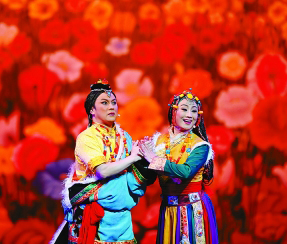 2016年10月15日,成都市川剧研究院的演员在《尘埃落定》中表演。当日,第十一届中国艺术节在陕西开幕。成都市川剧研究院参评“文华奖”的川剧《尘埃落定》于当晚在西安人民剧院上演。川剧《尘埃落定》根据茅盾文学奖得主阿来的同名小说改编。(新华社记者 李一博/摄)