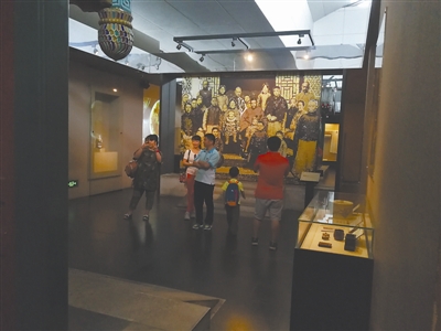 在首都博物馆展厅内,参观者在展示老北京生活场景的展厅内拍照,这样的场景式展示形式,让参观者有身临其境之感(本报记者 赵昂/摄)